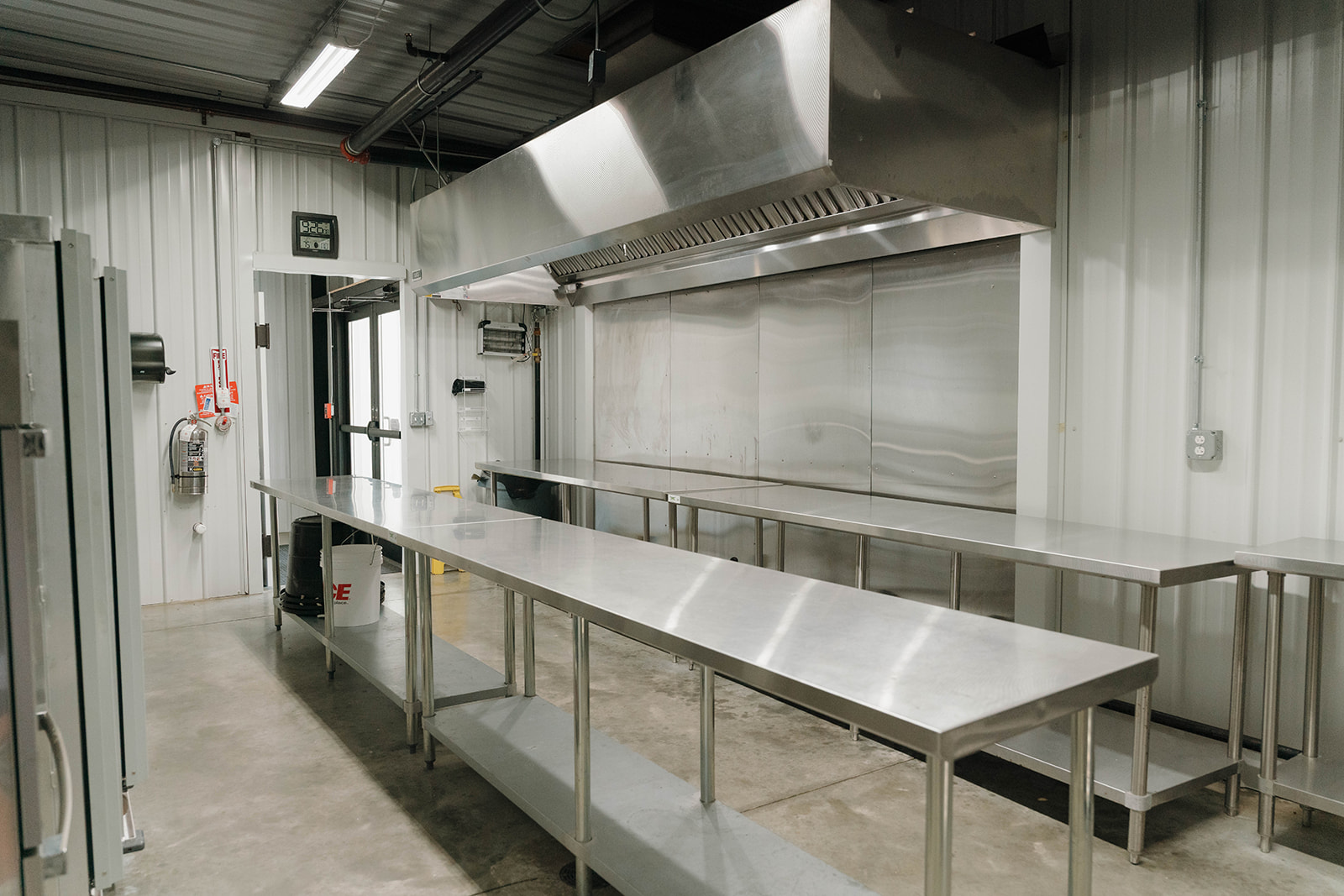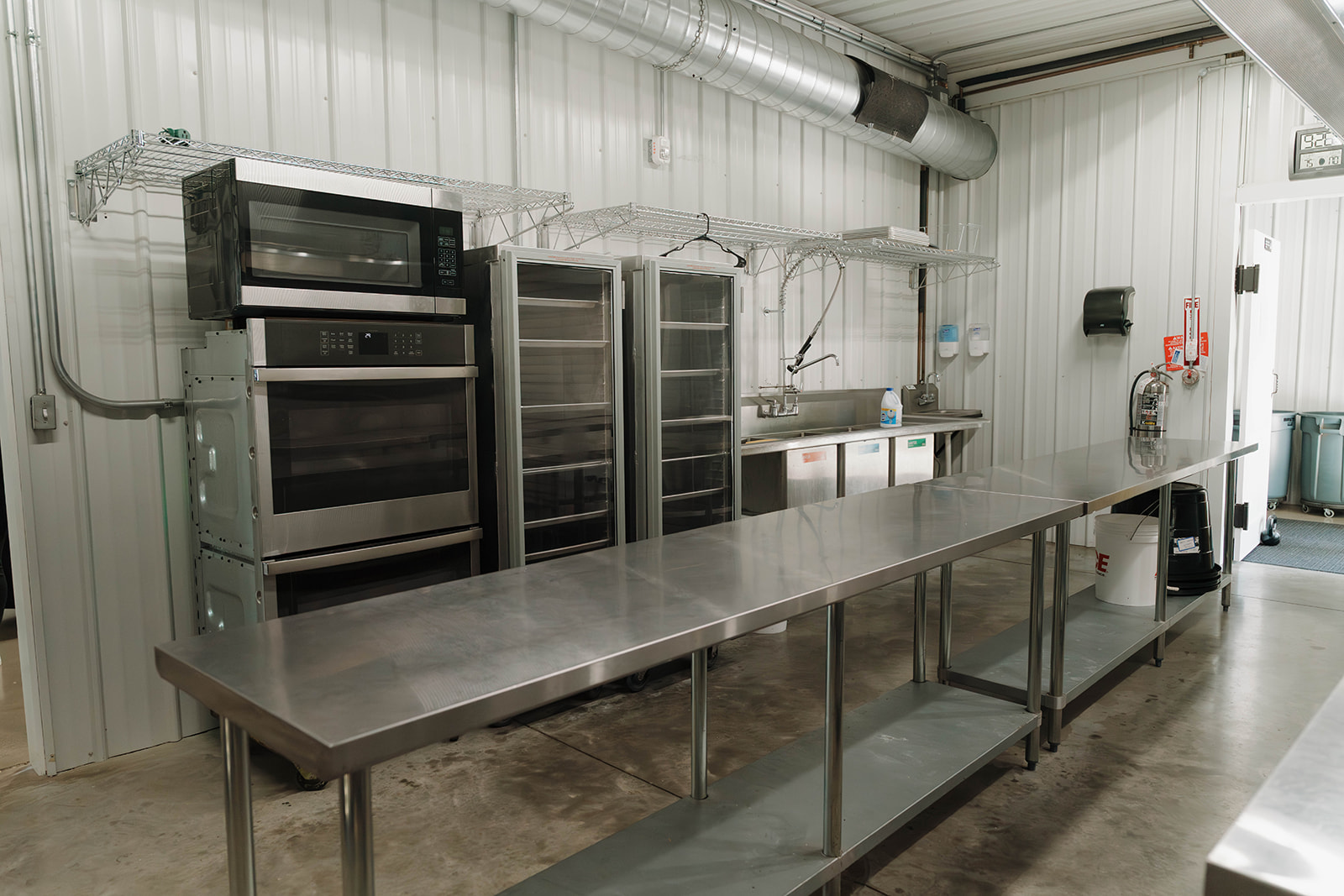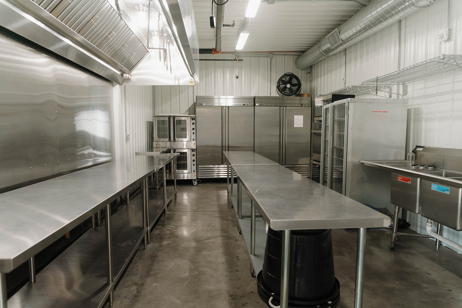 - Large caterer’s prep kitchen that includes double ovens, a triple sink, 2 food warmers, 2 sub zero coolers, ice machine, and portable prep tables